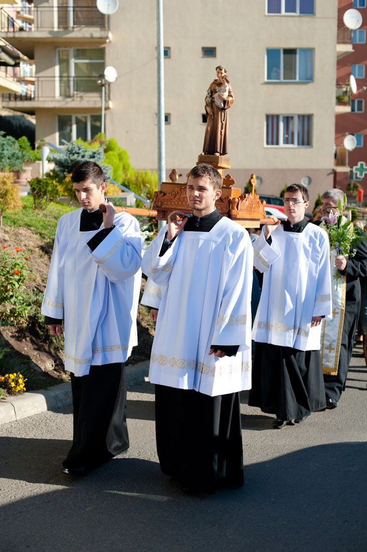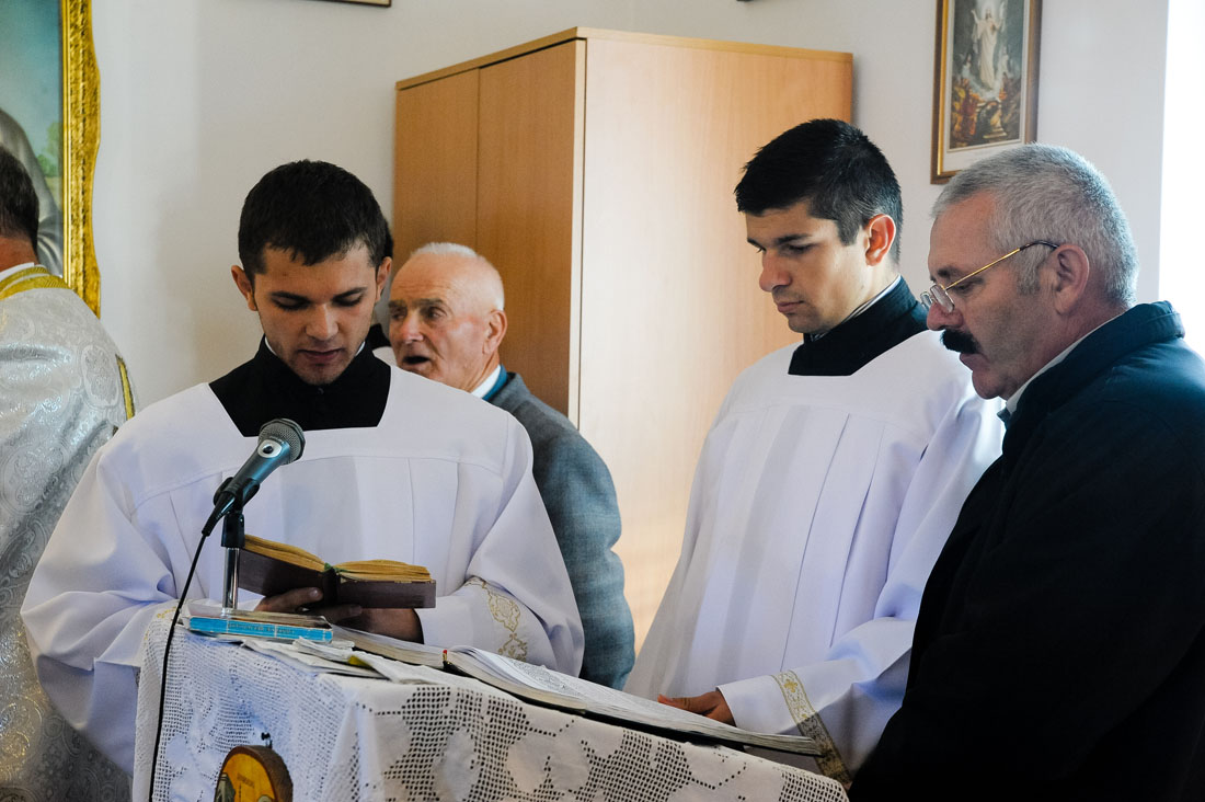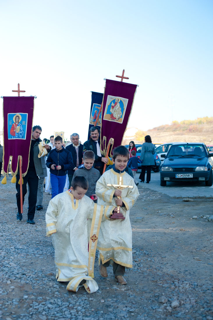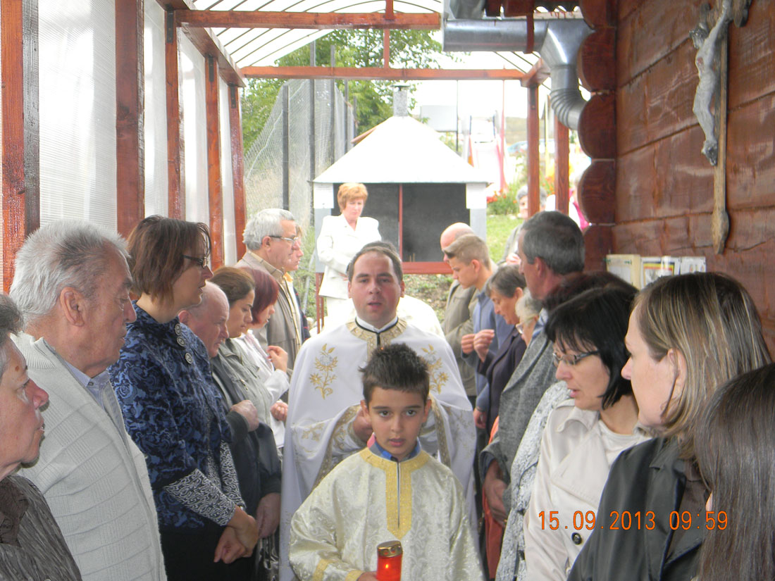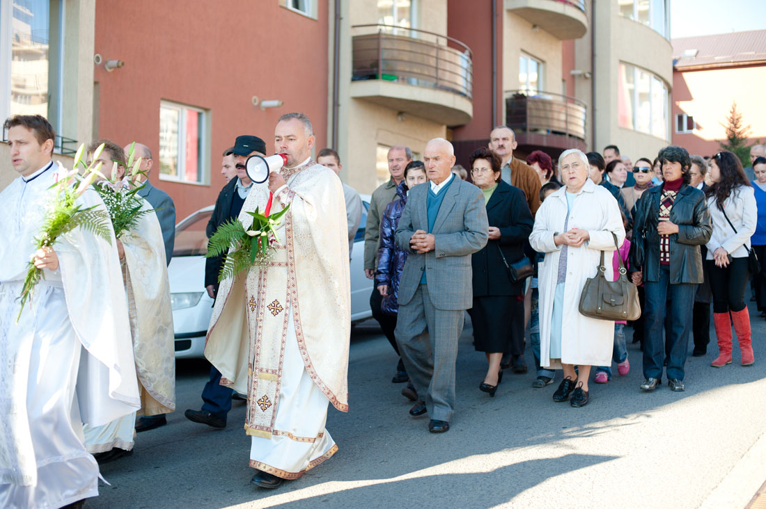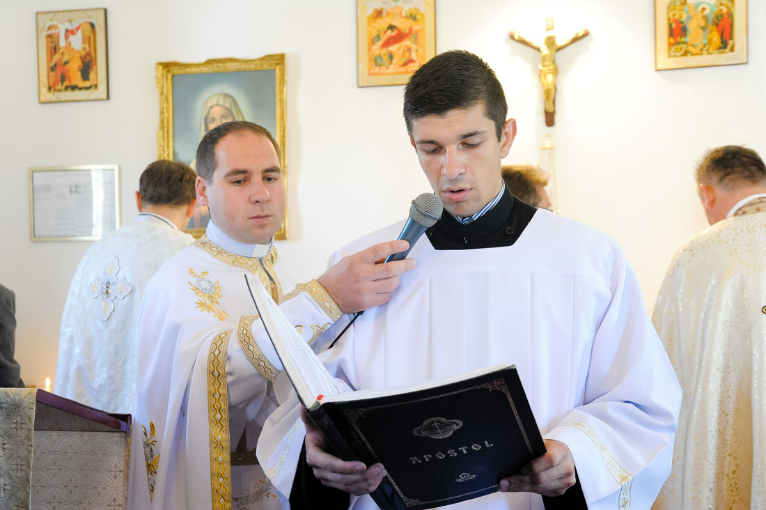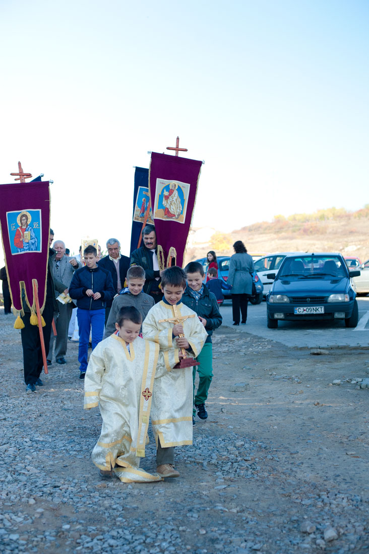 Sfânta Liturghie s-a celebrat la masa altarului improvizat, de către PS Florentin asistat de un sobor de preoți, între care pr. Cristian Sabău, protopop de Cluj I, pr. consilier Romulus Silaghi, pr. consilier Marius Cerghizan, preoți clujeni și preoți invitați, între care pr. Andrei Borzași de la Oradea și pr. Gelu Ardelean, protopop de Turda. Răspunsurile liturgice le-au dat studenți ai Seminarului Teologic eparhial din Cluj-Napoca. O participare numeroasă a fost din partea Reuniunii Mariane, foarte activă în această parohie; de asemenea au fost de față primarul localității, autorități locale, enoriașii parohiei.