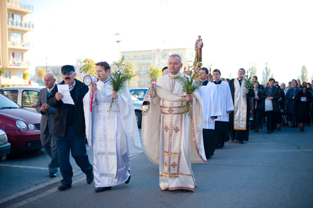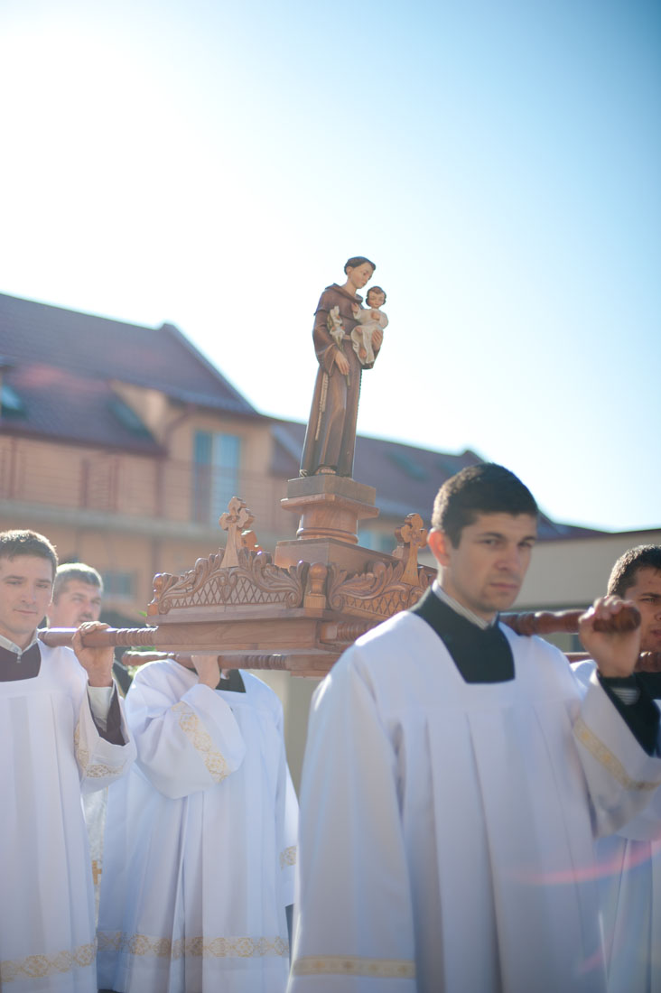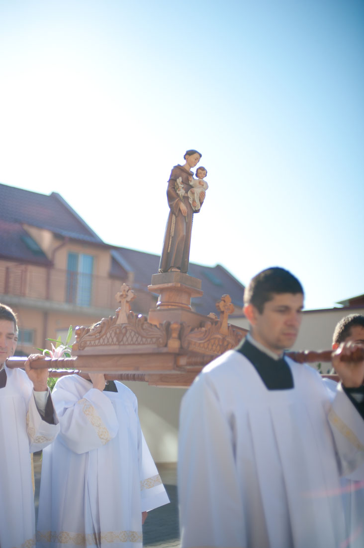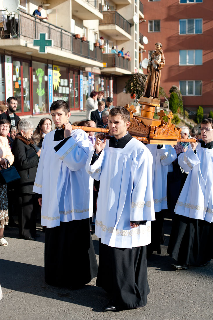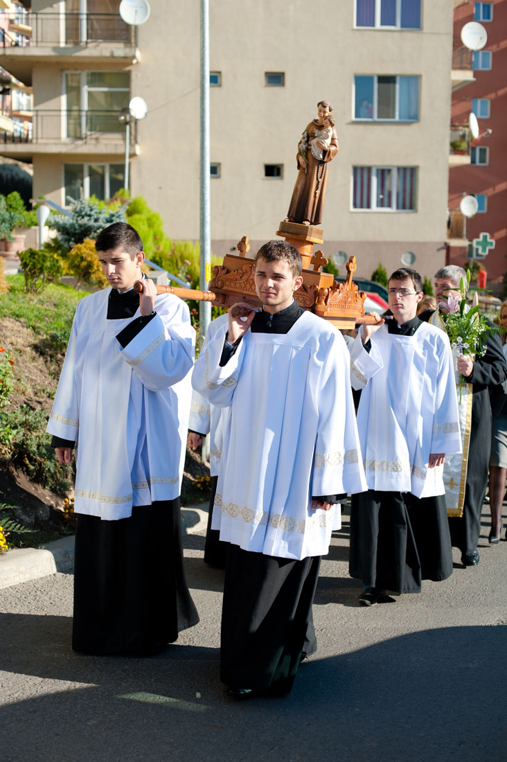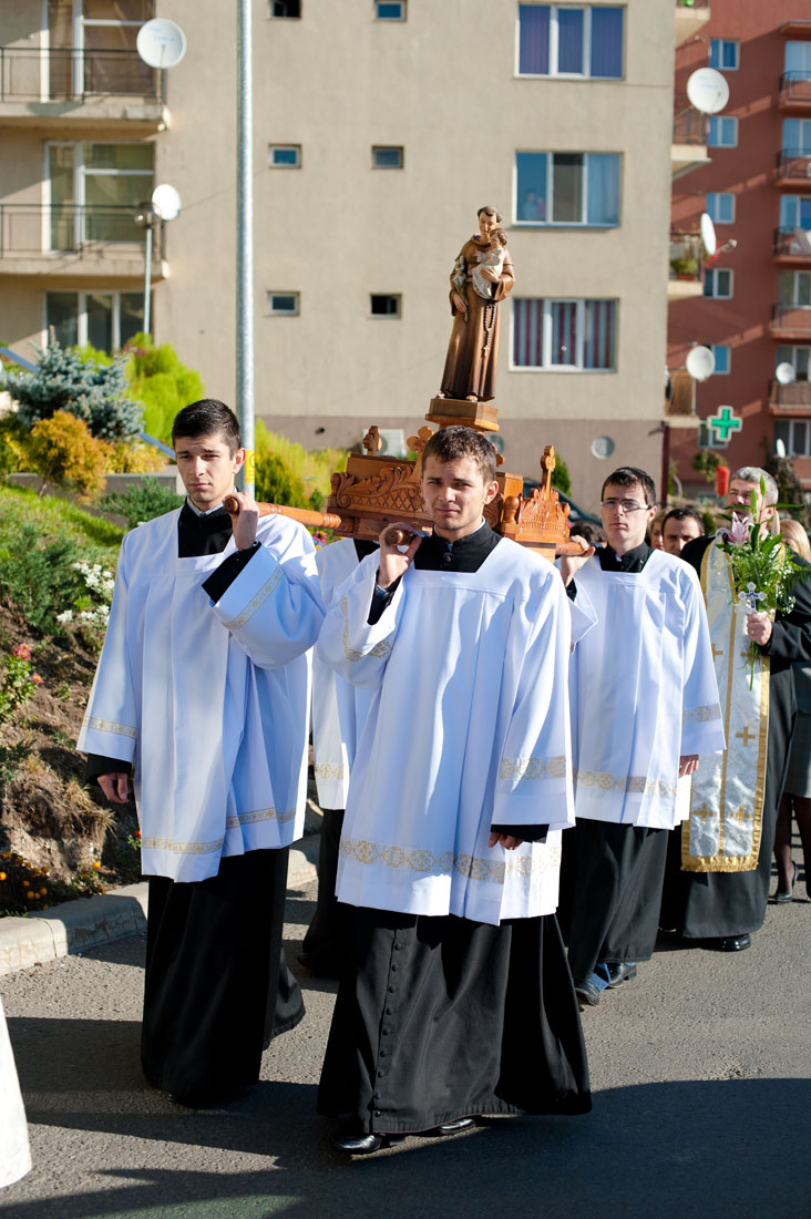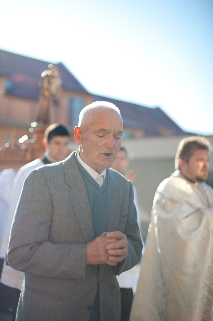 Sfânta Liturghie s-a celebrat la masa altarului improvizat, de către PS Florentin asistat de un sobor de preoți, între care pr. Cristian Sabău, protopop de Cluj I, pr. consilier Romulus Silaghi, pr. consilier Marius Cerghizan, preoți clujeni și preoți invitați, între care pr. Andrei Borzași de la Oradea și pr. Gelu Ardelean, protopop de Turda. Răspunsurile liturgice le-au dat studenți ai Seminarului Teologic eparhial din Cluj-Napoca. O participare numeroasă a fost din partea Reuniunii Mariane, foarte activă în această parohie; de asemenea au fost de față primarul localității, autorități locale, enoriașii parohiei.