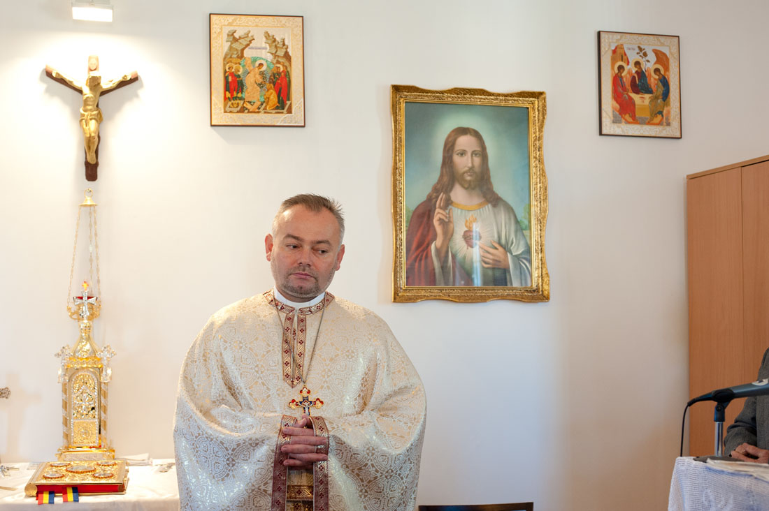Preasfinția Sa a dorit să mulțumească invitației pe care i-a adresat-o pr. Ionel Pașca l-a felicitat „pentru perseverența pe care o are de a duce la bun sfârșit acest vis, la care trebuie să avem curajul să contribuim fiecare dintre noi”. În semn de recunoștință și amintire, a dorit să ofere comunității o icoană a Cinei de Taină: „locul unde Mântuitorul a întemeiat Sacramentul Euharistiei – Izvorul de viață al Bisericii până în zilele noastre -, pentru a spune că acest locaș trebuie să fie izvor de viață și de lumină pentru toți, întru Învierea lui Hristos”. Pentru că „orice biserică se zidește pe sămânța sfântă a Martirilor, sângele lor este sămânța credinței noastre de astăzi”, PS Florentin a oferit părintelui paroh și un volum nou apărut la Editura Viața Creștină, „care împreunează epistolele pastorale ale primului purpurat al Neamului românesc, Cardinalul Iuliu Hossu de vrednică pomenire, căruia, după data de 2 iunie, la Blaj, când va fi ridicat la treapta altarelor, îi vom spune «Fericitul martir pentru credință»”.