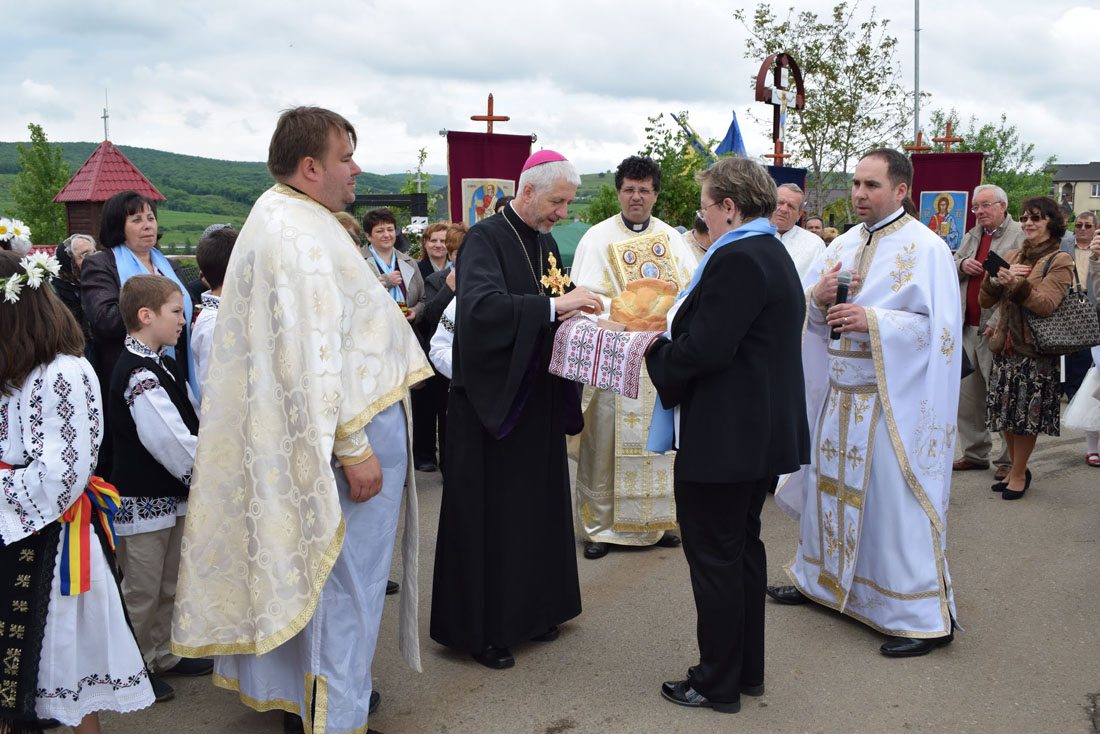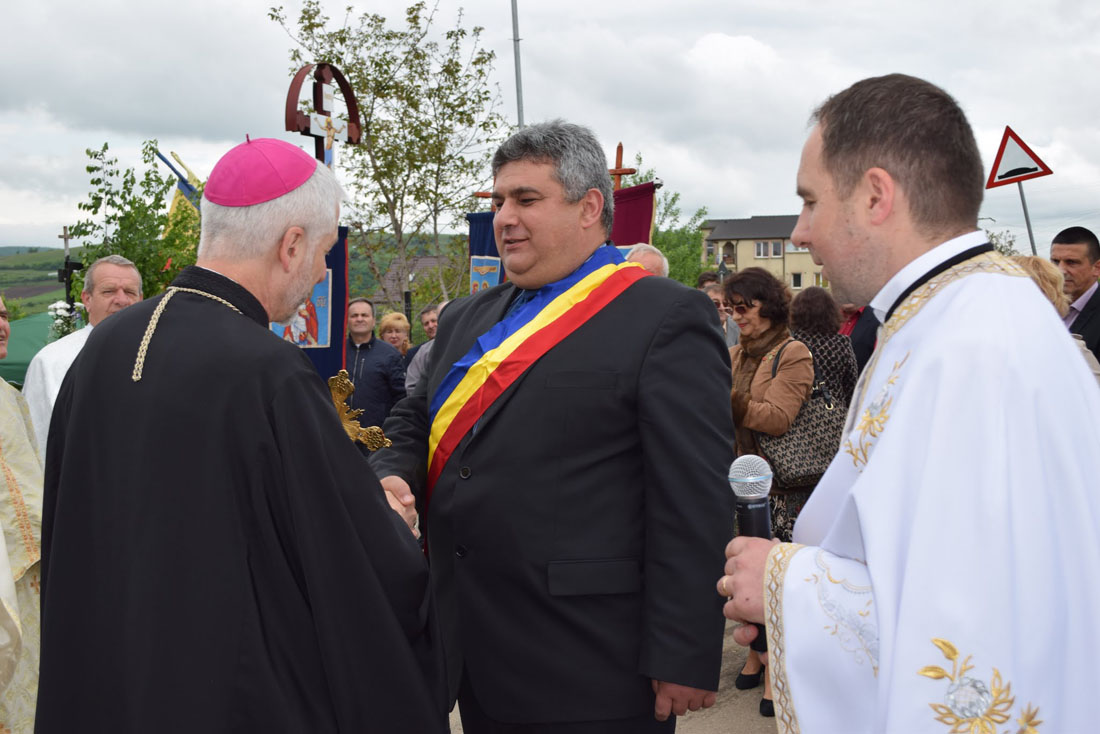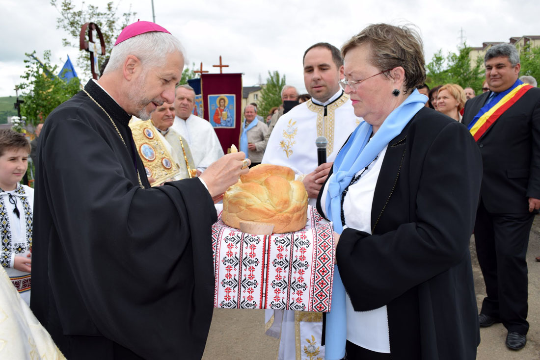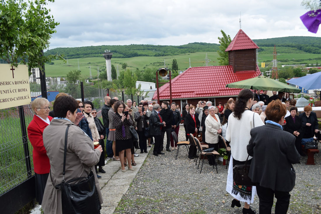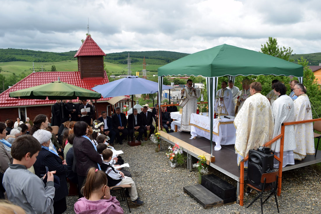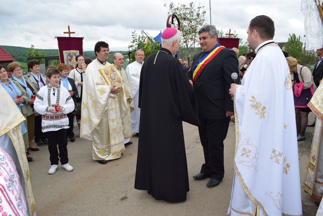 După Sfânta Liturghie, pr. Ioan Pașca și-a exprimat recunoștința pentru celebrarea sărbătorească și pentru prezența Păstorului Eparhiei de Cluj-Gherla, și a oferit Preasfinției Sale Claudiu, din partea comunității parohiale, câteva semne de mulțumire și amintire, între care, o candelă, „pentru a rămâne mereu făclii aprinse” și simbol pentru credință; de asemenea, „pentru că astăzi ați semănat sămânța curată, bună și sfântă în parohia noastră, v-am oferit și câteva spice de grâu, care simbolizează roadele pe care le vedem” – cei 12 copilași care au primit Prima Sfântă Împărtășanie. Un alt dar a fost un șirag al Sfântului Rozariu, în Biserica Catolică luna octombrie fiind și „luna Rozariului”. A mulțumit apoi tuturor: preoților, consiliului parohial, Reuniunii Mariane, autorităților locale, celor care s-au implicat în organizarea evenimentului, celor care au contribuit și sprijinit zidirea bisericii. Preasfinția Sa Claudiu a mulțumit pr. Ioan Pașca „pentru misiunea minunată pe care a făcut-o în această parohie, pentru biserica ridicată dar mai ales pentru bisericile pe care le-a ridicat în sufletele credincioșilor”. A mulțumit viceprimarului, consilierilor locali, tuturor celor prezenți. În continuare, copiilor le-au fost înmânate diplome de amintire de la Prima Sfântă Împărtășanie, și apoi pr. paroh Ioan Pașca a invitat la agapa fraternă pregătită cu generozitate pentru toți, prilej de întâlnire și bucurie în zi de sărbătoare.