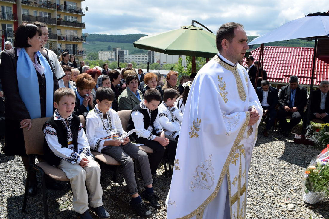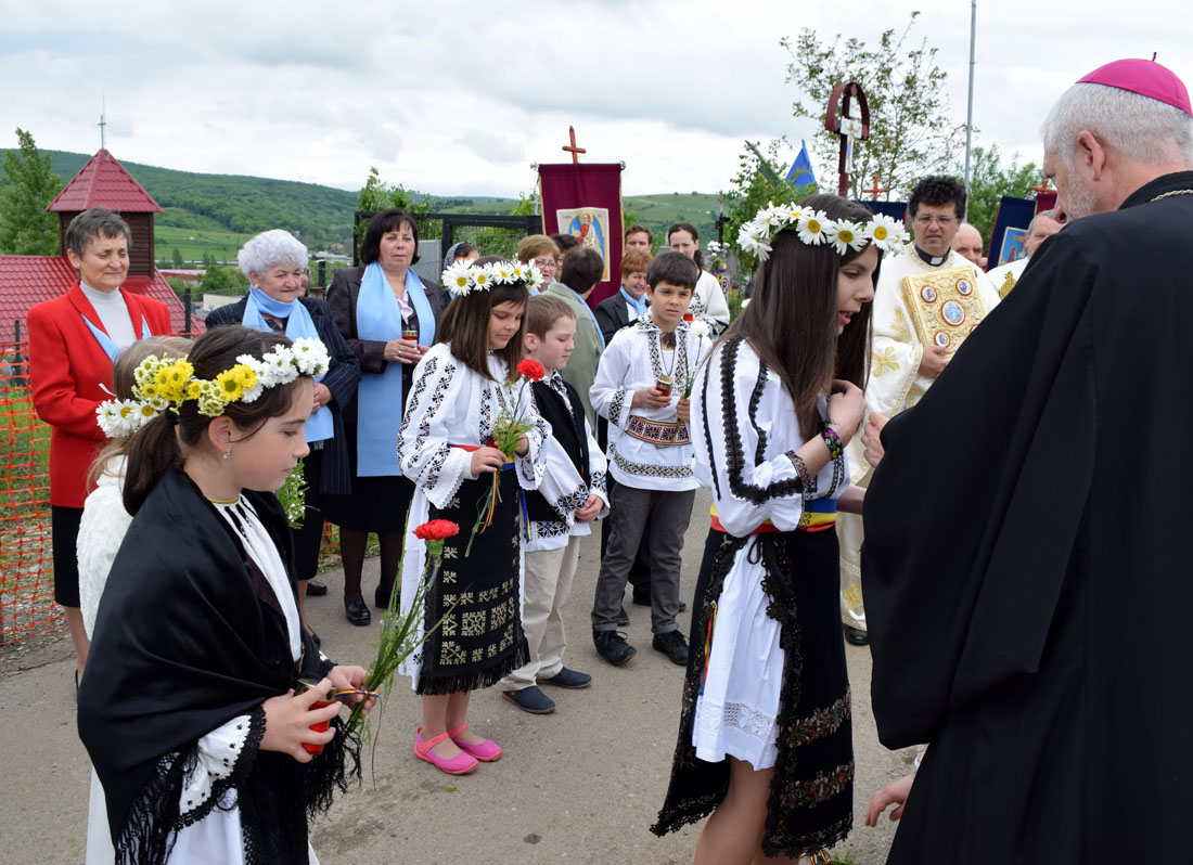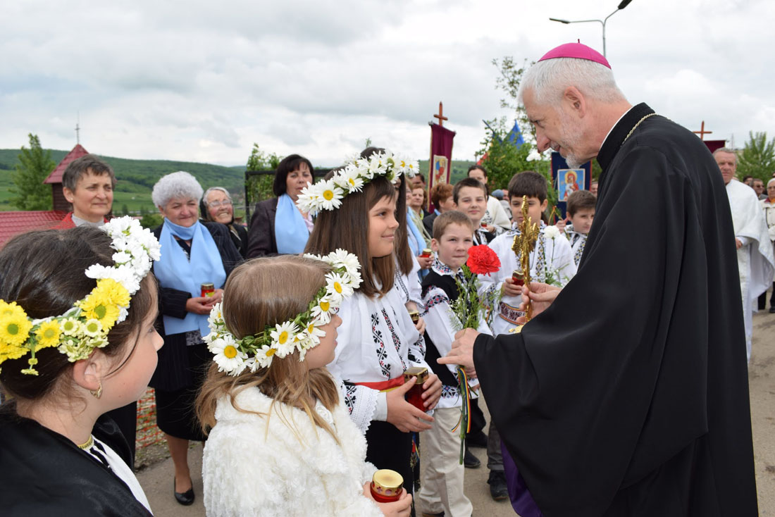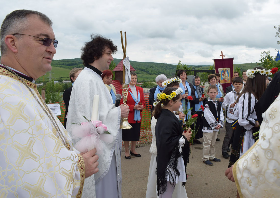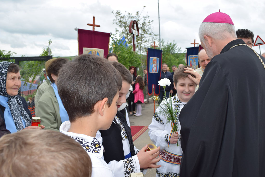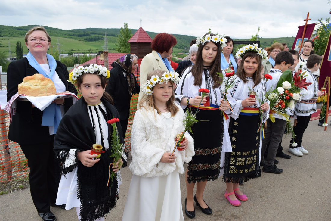 După Sfânta Liturghie, pr. Ioan Pașca și-a exprimat recunoștința pentru celebrarea sărbătorească și pentru prezența Păstorului Eparhiei de Cluj-Gherla, și a oferit Preasfinției Sale Claudiu, din partea comunității parohiale, câteva semne de mulțumire și amintire, între care, o candelă, „pentru a rămâne mereu făclii aprinse” și simbol pentru credință; de asemenea, „pentru că astăzi ați semănat sămânța curată, bună și sfântă în parohia noastră, v-am oferit și câteva spice de grâu, care simbolizează roadele pe care le vedem” – cei 12 copilași care au primit Prima Sfântă Împărtășanie. Un alt dar a fost un șirag al Sfântului Rozariu, în Biserica Catolică luna octombrie fiind și „luna Rozariului”. A mulțumit apoi tuturor: preoților, consiliului parohial, Reuniunii Mariane, autorităților locale, celor care s-au implicat în organizarea evenimentului, celor care au contribuit și sprijinit zidirea bisericii. Preasfinția Sa Claudiu a mulțumit pr. Ioan Pașca „pentru misiunea minunată pe care a făcut-o în această parohie, pentru biserica ridicată dar mai ales pentru bisericile pe care le-a ridicat în sufletele credincioșilor”. A mulțumit viceprimarului, consilierilor locali, tuturor celor prezenți. În continuare, copiilor le-au fost înmânate diplome de amintire de la Prima Sfântă Împărtășanie, și apoi pr. paroh Ioan Pașca a invitat la agapa fraternă pregătită cu generozitate pentru toți, prilej de întâlnire și bucurie în zi de sărbătoare.