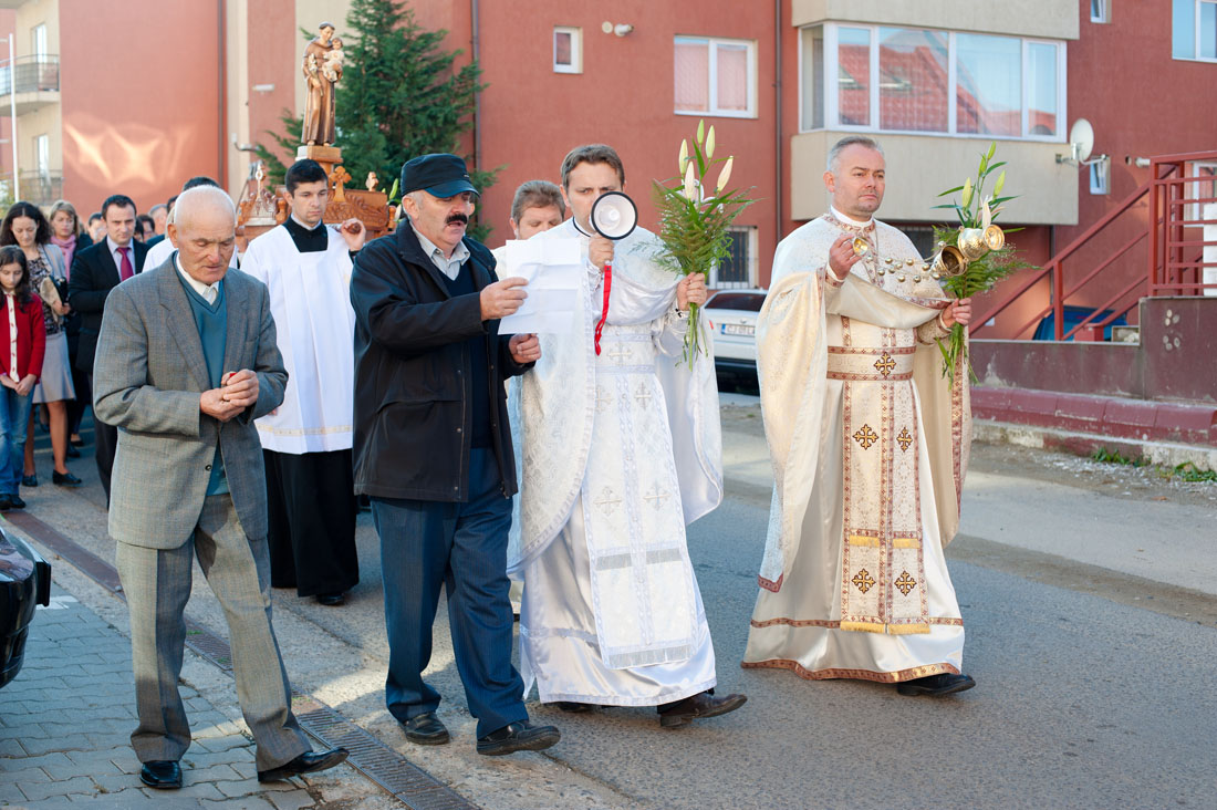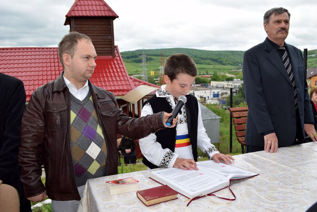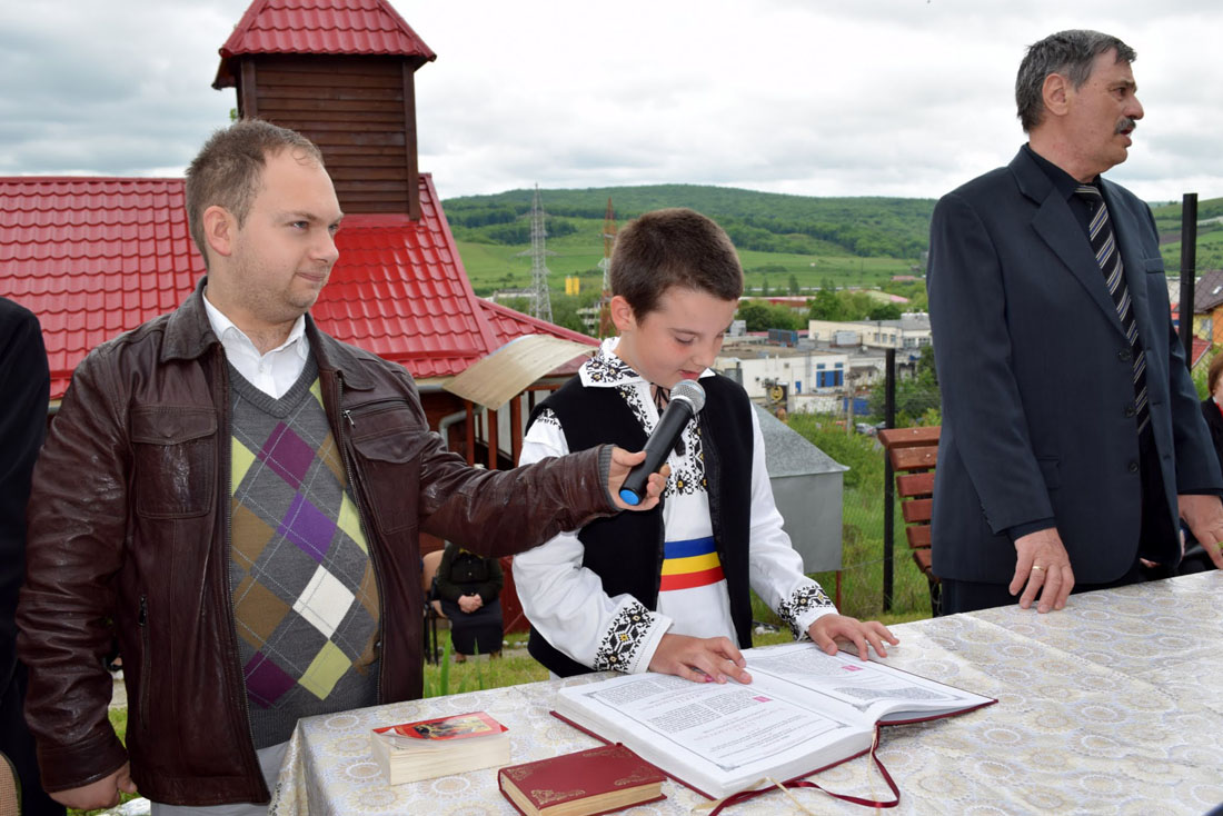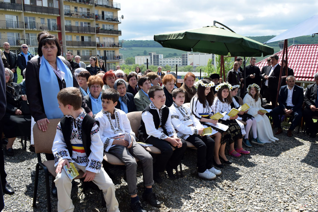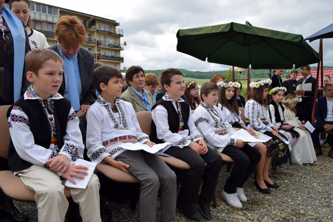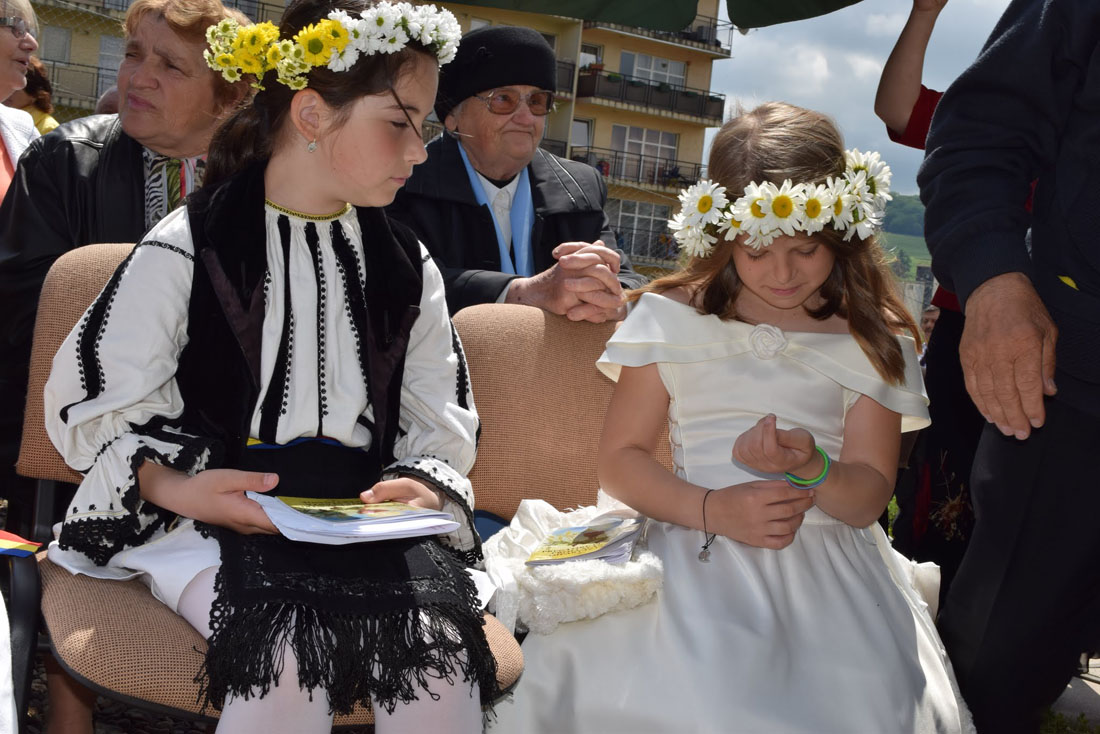 După Sfânta Liturghie, pr. Ioan Pașca și-a exprimat recunoștința pentru celebrarea sărbătorească și pentru prezența Păstorului Eparhiei de Cluj-Gherla, și a oferit Preasfinției Sale Claudiu, din partea comunității parohiale, câteva semne de mulțumire și amintire, între care, o candelă, „pentru a rămâne mereu făclii aprinse” și simbol pentru credință; de asemenea, „pentru că astăzi ați semănat sămânța curată, bună și sfântă în parohia noastră, v-am oferit și câteva spice de grâu, care simbolizează roadele pe care le vedem” – cei 12 copilași care au primit Prima Sfântă Împărtășanie. Un alt dar a fost un șirag al Sfântului Rozariu, în Biserica Catolică luna octombrie fiind și „luna Rozariului”. A mulțumit apoi tuturor: preoților, consiliului parohial, Reuniunii Mariane, autorităților locale, celor care s-au implicat în organizarea evenimentului, celor care au contribuit și sprijinit zidirea bisericii. Preasfinția Sa Claudiu a mulțumit pr. Ioan Pașca „pentru misiunea minunată pe care a făcut-o în această parohie, pentru biserica ridicată dar mai ales pentru bisericile pe care le-a ridicat în sufletele credincioșilor”. A mulțumit viceprimarului, consilierilor locali, tuturor celor prezenți. În continuare, copiilor le-au fost înmânate diplome de amintire de la Prima Sfântă Împărtășanie, și apoi pr. paroh Ioan Pașca a invitat la agapa fraternă pregătită cu generozitate pentru toți, prilej de întâlnire și bucurie în zi de sărbătoare.