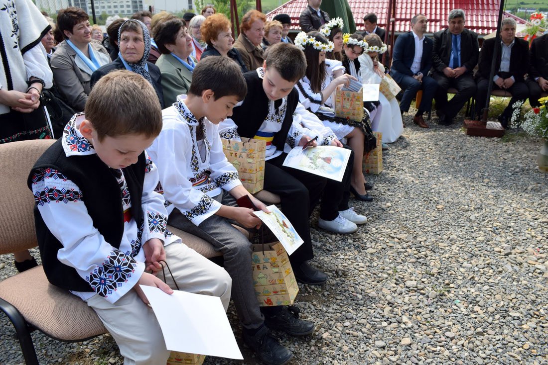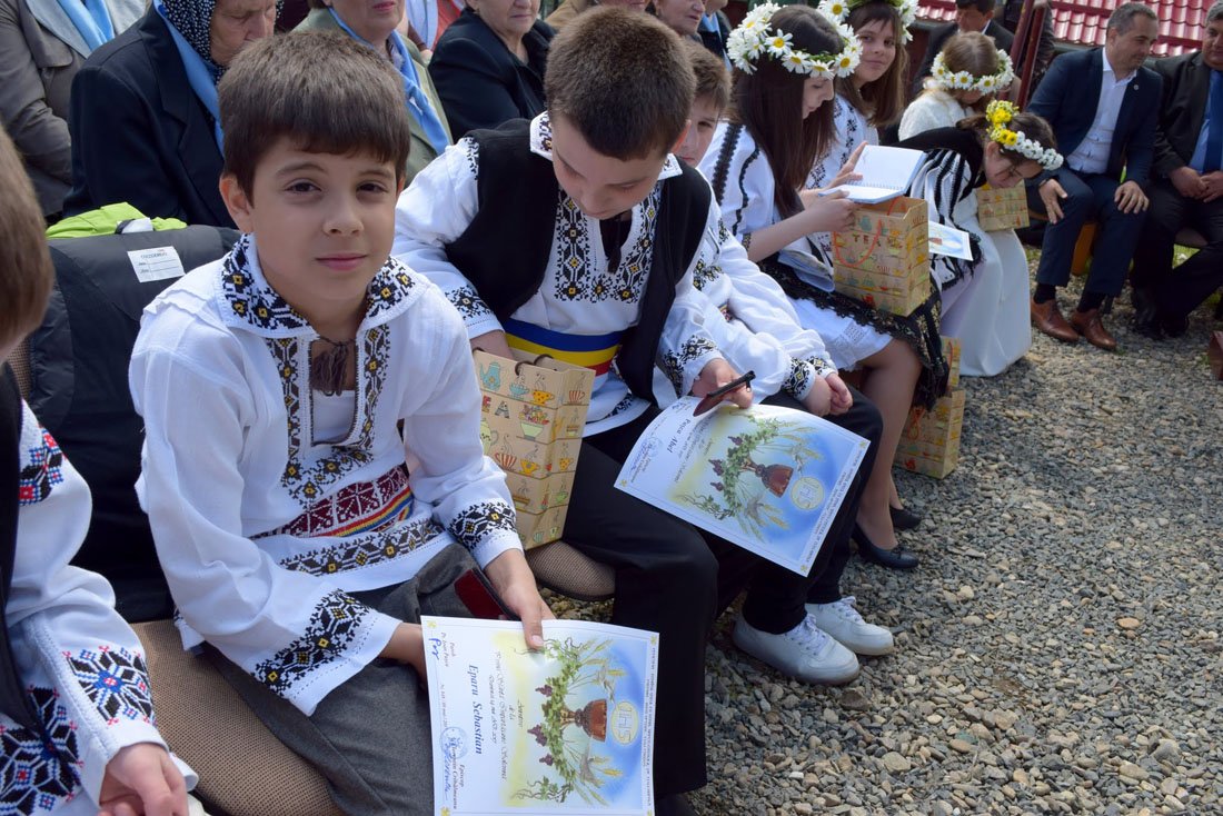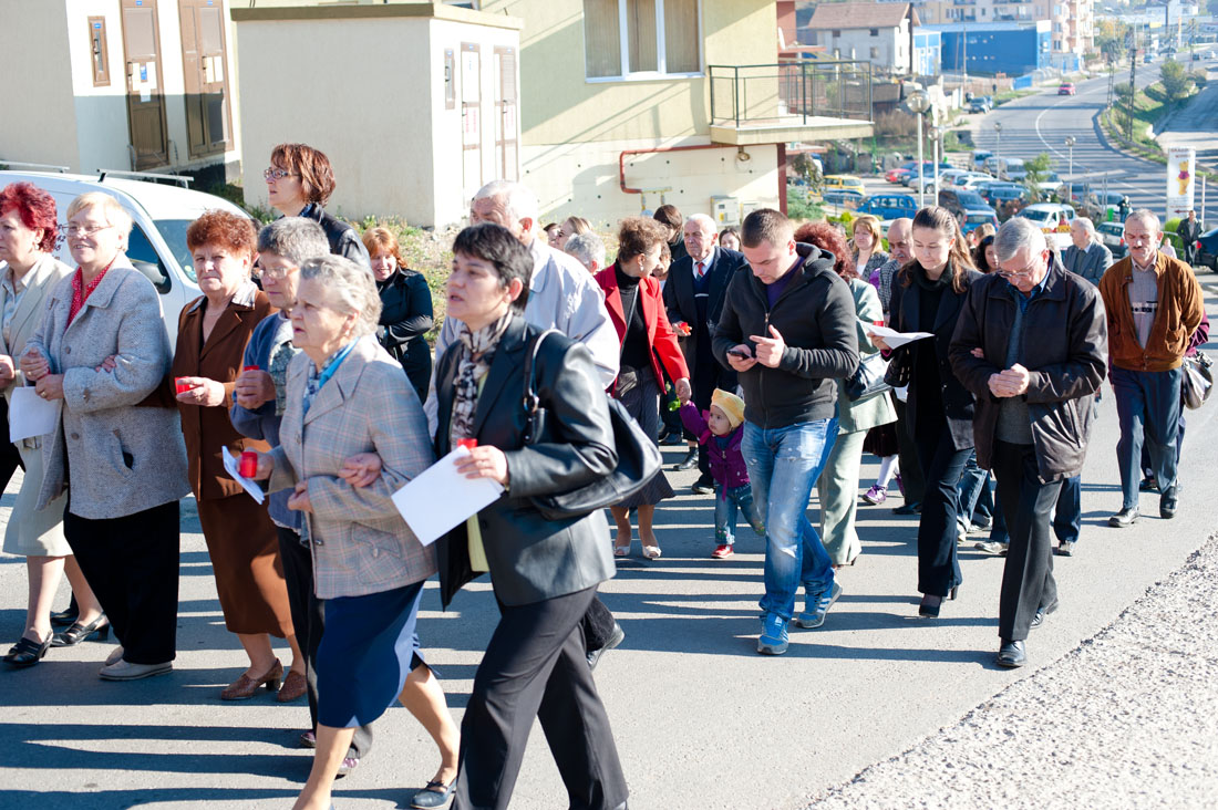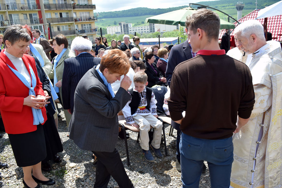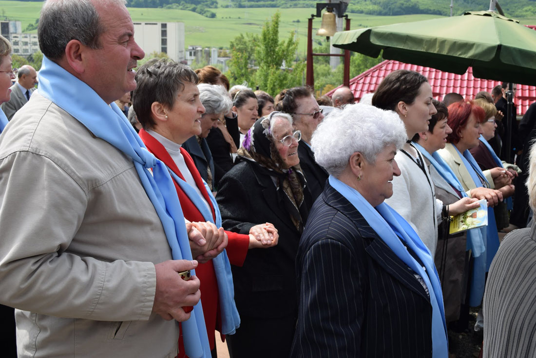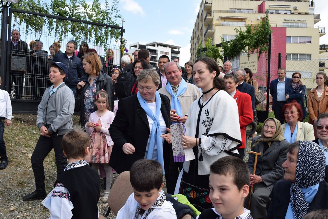 După Sfânta Liturghie, pr. Ioan Pașca și-a exprimat recunoștința pentru celebrarea sărbătorească și pentru prezența Păstorului Eparhiei de Cluj-Gherla, și a oferit Preasfinției Sale Claudiu, din partea comunității parohiale, câteva semne de mulțumire și amintire, între care, o candelă, „pentru a rămâne mereu făclii aprinse” și simbol pentru credință; de asemenea, „pentru că astăzi ați semănat sămânța curată, bună și sfântă în parohia noastră, v-am oferit și câteva spice de grâu, care simbolizează roadele pe care le vedem” – cei 12 copilași care au primit Prima Sfântă Împărtășanie. Un alt dar a fost un șirag al Sfântului Rozariu, în Biserica Catolică luna octombrie fiind și „luna Rozariului”. A mulțumit apoi tuturor: preoților, consiliului parohial, Reuniunii Mariane, autorităților locale, celor care s-au implicat în organizarea evenimentului, celor care au contribuit și sprijinit zidirea bisericii. Preasfinția Sa Claudiu a mulțumit pr. Ioan Pașca „pentru misiunea minunată pe care a făcut-o în această parohie, pentru biserica ridicată dar mai ales pentru bisericile pe care le-a ridicat în sufletele credincioșilor”. A mulțumit viceprimarului, consilierilor locali, tuturor celor prezenți. În continuare, copiilor le-au fost înmânate diplome de amintire de la Prima Sfântă Împărtășanie, și apoi pr. paroh Ioan Pașca a invitat la agapa fraternă pregătită cu generozitate pentru toți, prilej de întâlnire și bucurie în zi de sărbătoare.