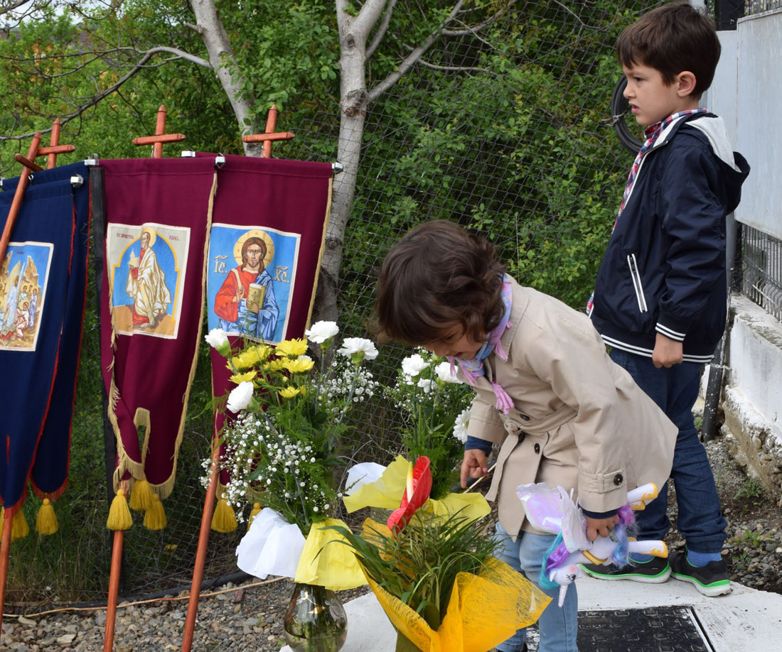 PS Florentin a invitat credincioșii să păstreze în suflete cuvântul îngerului: „nu vă temeți, a Înviat, nu este aici [în mormânt]”, pentru că „Hristos Înviat este acum aici [în mijlocul credincioșilor]”. „Am făcut binecuvântare a fundamentului bisericii, a acestei Cruci – dar Biserica vie sunteți dumneavoastră, acolo este important să zidim în continuare, pe durata vieții noastre: Biserica lui Hristos, să o facem mai frumoasă, mai luminoasă, astfel încât, oricând Hristos va veni, să nu găsească un mormânt întunecat, ci să găsească o cameră luminată, curată de păcat și de orice pată, așa cum sunt și sufletele acestor copilași care astăzi pentru prima oară l-au primit în sufletele lor: tabernacole vii ale lui Hristos.”