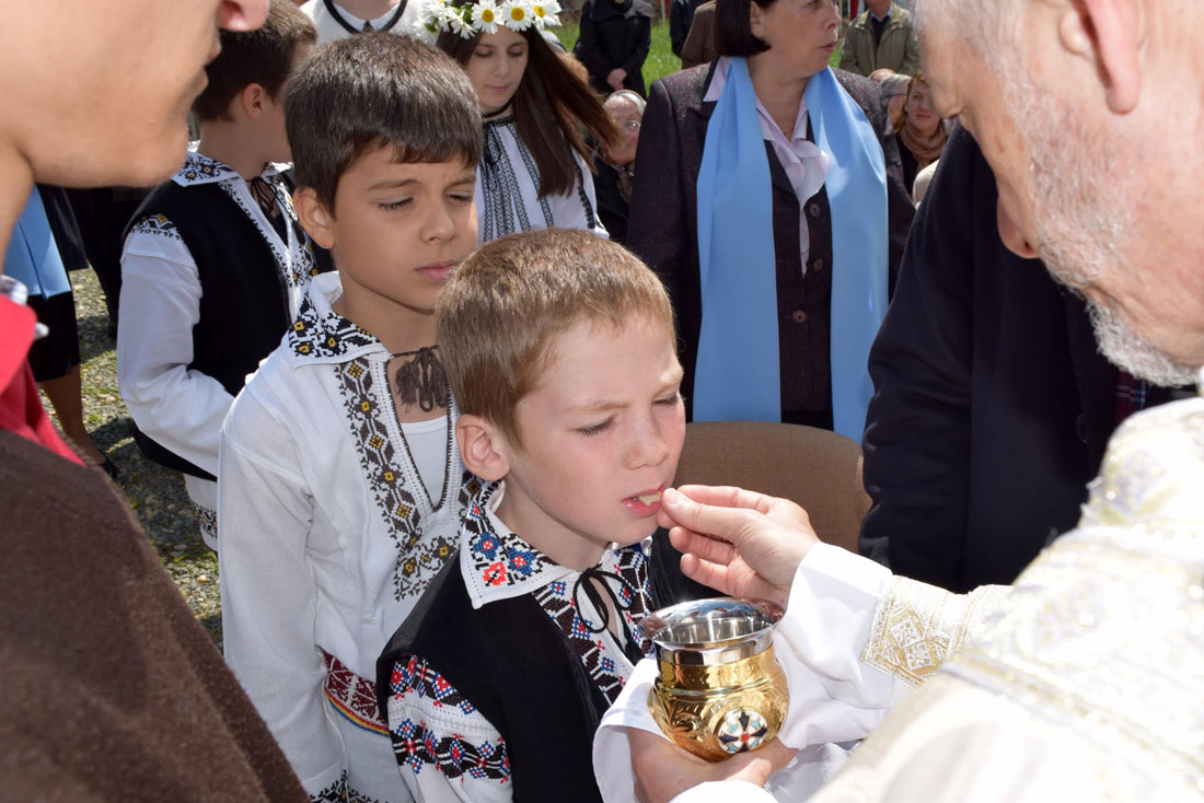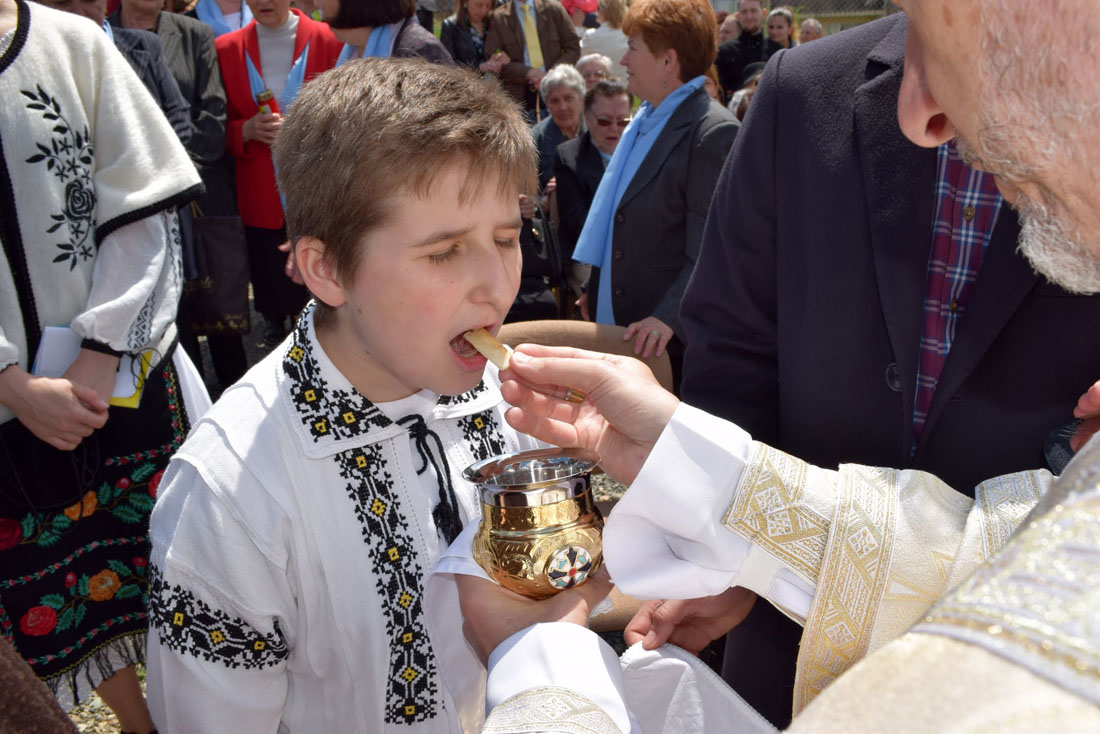 Duminică, 15 octombrie 2023, în ziua în care Biserica a propus spre meditare pilda Semănătorului (Luca 8,5-15), semințe căzute pe pământ bun și-au așezat rodul în fața Sf. Altar, prin 12 copii care s-au împărtășit pentru prima dată, în noua biserică a parohiei greco-catolice din Cordoș-Baciu, lângă mun. Cluj-Napoca. Preasfinția Sa Claudiu, Episcopul de Cluj-Gherla, s-a aflat în mijlocul acestei comunități păstorită de pr. Ioan Pașca, a celebrat prima Sf. Liturghie arhierească în frumoasa biserică parohială – recent ridicată, încă în curs de finalizare – și a oferit Pâinea cerească, Trupul și Sângele lui Isus, copiilor pregătiți de Cristina Pașca, soția preotului, pentru acest moment cu totul special al vieții lor.